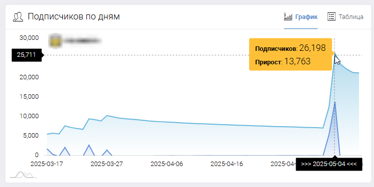 Канал существует всего несколько месяцев. Однако за это время он сумел привлечь внушительную аудиторию. Ресурс упоминали в других каналах всего 26 раз. Активная рекламная кампания не использована для привлечения новых подписчиков. При этом в начале апреля на канал за день «пришло» больше 13 тысяч человек.