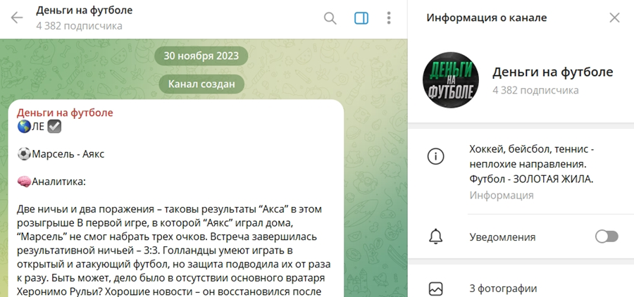 Итоги проверки телеграмм-канала «Деньги на футболе»