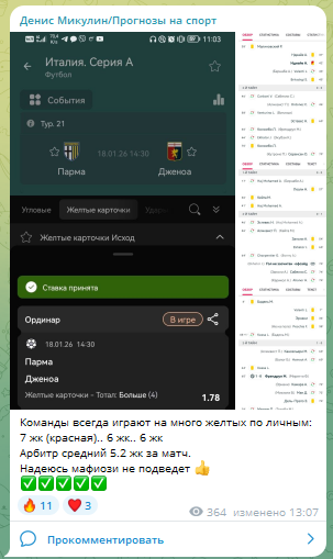 Результаты в тг-канале подводятся объемно. Денис, вероятно, смотрит матчи, знает имена игроков и судей. Его экспертиза вызывает у нас доверие. Да и комментарии для пользователей он оставляет открытыми.