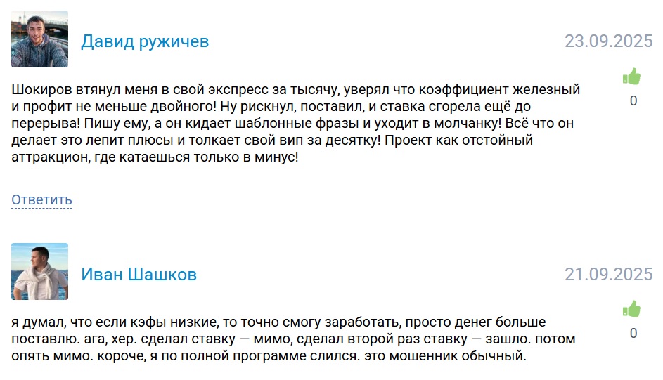 Реальные клиенты оставляют в основном негативные комментарии. Игроки жалуются на слив банка, слабую проходимость ставок, отсутствие гарантий. Беттеры отмечают в комментариях, что коэффициенты низкие, а результат уводит в минус. Вместо честного сотрудничества проект предлагает развод.
