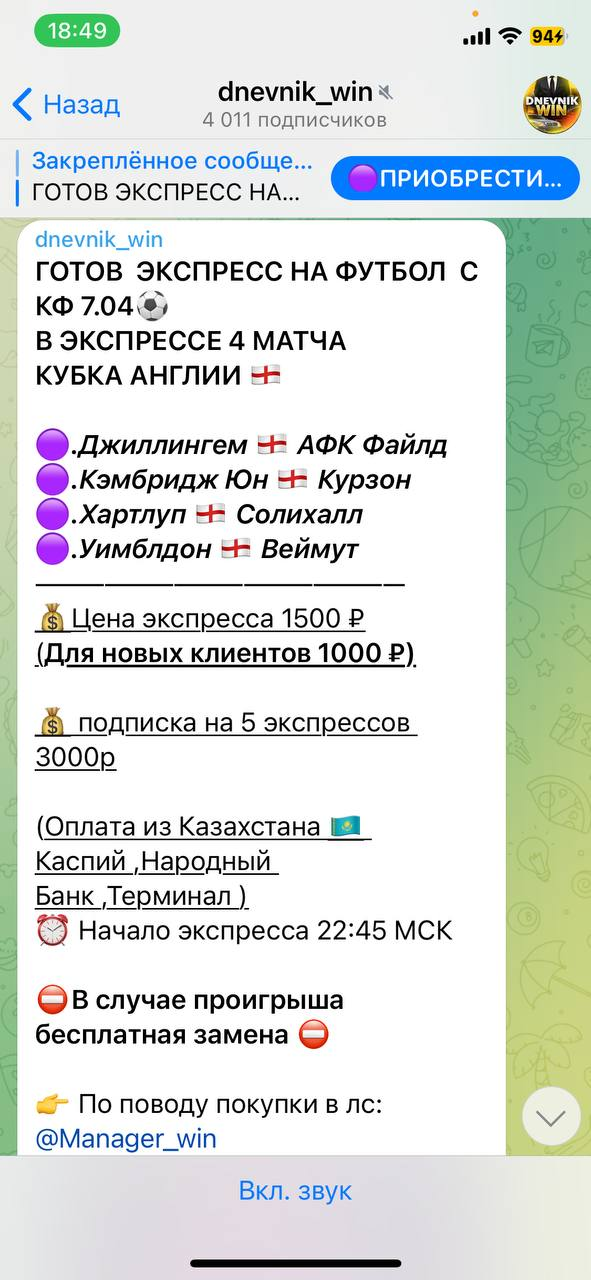 Обзор Телеграм-канала Дневник Вин со ставками на спорт: отзывы о работе аналитика Manager Win и перечень его услуг