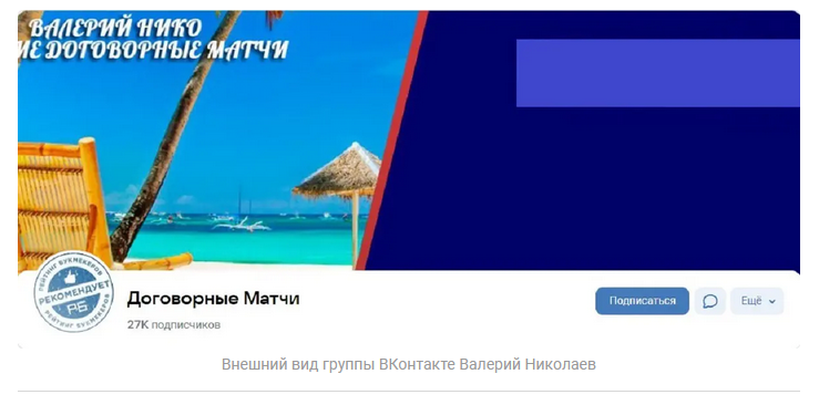 Договорные матчи – капперская группа во Вконтакте, создателем которой является некий Валерий Николаев. Он же исполняет роль администратора, называет себя инсайдером с доступом к конфиденциальным данным о результатах событий. В ленте публикует платные пари по футболу. Утверждает, что с ним фолловеры получают доход в беттинге, не рискуя вообще ничем.