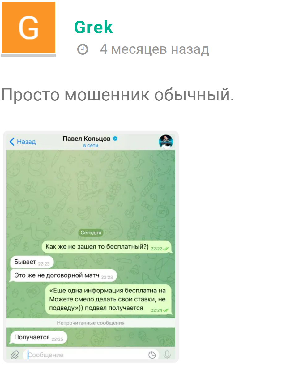 Отзывы о капперах Павел Кольцов и Мигунов Эльдар