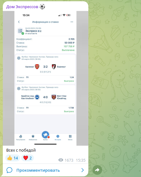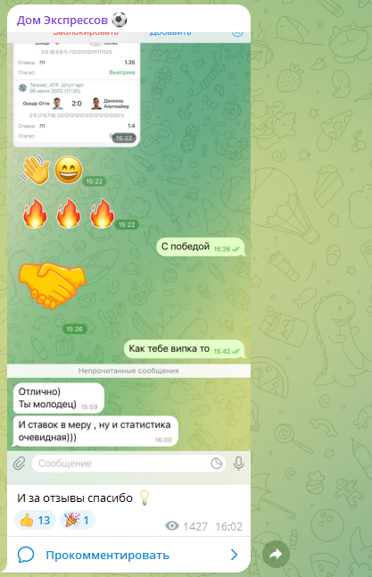 Телеграмм-канал Дом Экспрессов: отзывы, результаты ставок, на чем зарабатывает каппер
