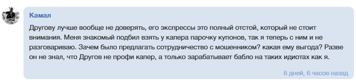 Комментарии закрыты, вместо реальных отзывов публикуются скрины «счастливых клиентов». На сторонних ресурсах встречаются разоблачения проекта — ставки убыточные, статистика сомнительная, а аудитория вводится в заблуждение.