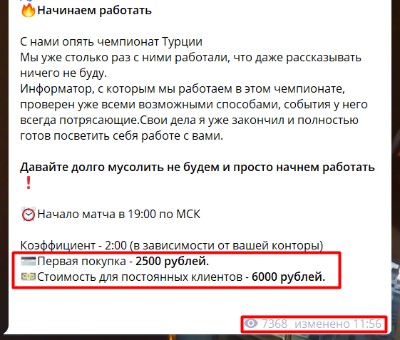 Публикации выходят строго под конкретный матч, ближе к началу игры. Ставки сопровождаются видеороликами, в которых показываются купоны, сделанные якобы от имени каппера. Но подобный контент может быть создан на заказ.