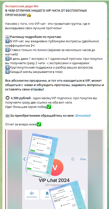 Проверка канала со ставками Экспрессная дяди Мо: оценка услуг каппера @moedyd в Телеграме, отзывы его клиентов