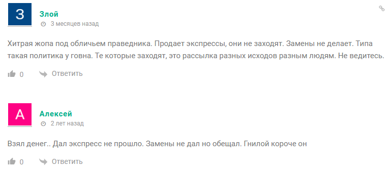 В канале публикуются исключительно положительные переписки с клиентами. Они не подкреплены фактами и легко подделываются. На сторонних сайтах и форумах встречаются жалобы от игроков. Они рассказывают, что купили предикты у Дяди Димы и слили банк. Также отмечаются случаи, когда после серии проигрышей в ленте снова появляются выигрышные скрины, никак не соответствующие реальности.