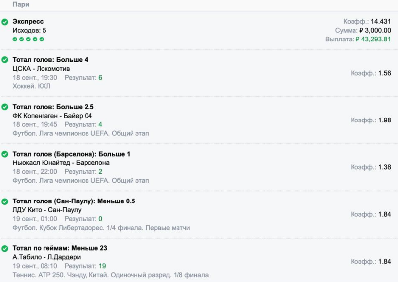 По окончании всех событий в экспрессе выкладывается результат пари и обновляется статистика. Капер также скидывает скрин купона с сайта букмекерской конторы.