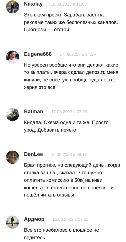 На сторонних форумах и ресурсах ситуация иная. Мы нашли массовые жалобы от пользователей. Игроки пишут, что купили ставку за 2 000 рублей, а он оказался проигрышным. Все отчеты, по их словам, — фейк, ставок с такой проходимостью у Владимира не существует. Многие беттеры называют проект мошенничеством.