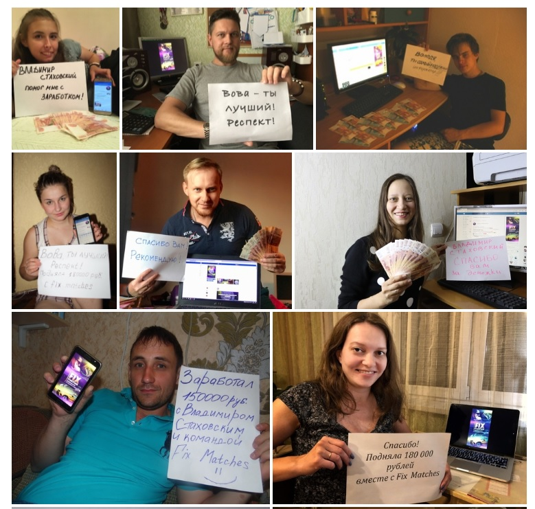 Владимир Стаховский любит выкладывать «отзывы» от клиентов. Контент из серии: парень держит в руке листок с надписью «спасибо за ставку» и на фоне пачка денег. Похоже больше на рекламу, чем на реальный отзыв.