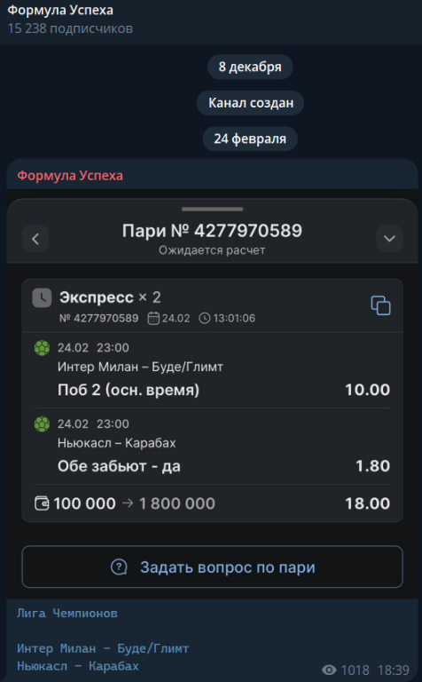 Если верить обертке, перед нами не просто «Формула Успеха», а почти «золотая жила»: экспрессы, огромные коэффициенты, прибыль с космическим размахом. Но за громким названием «Формула Успеха» в телеграм скрывается знакомая схема, где каппер играет не на длинном отрезке, а на эмоциях игрока и желании быстро поднять банк.