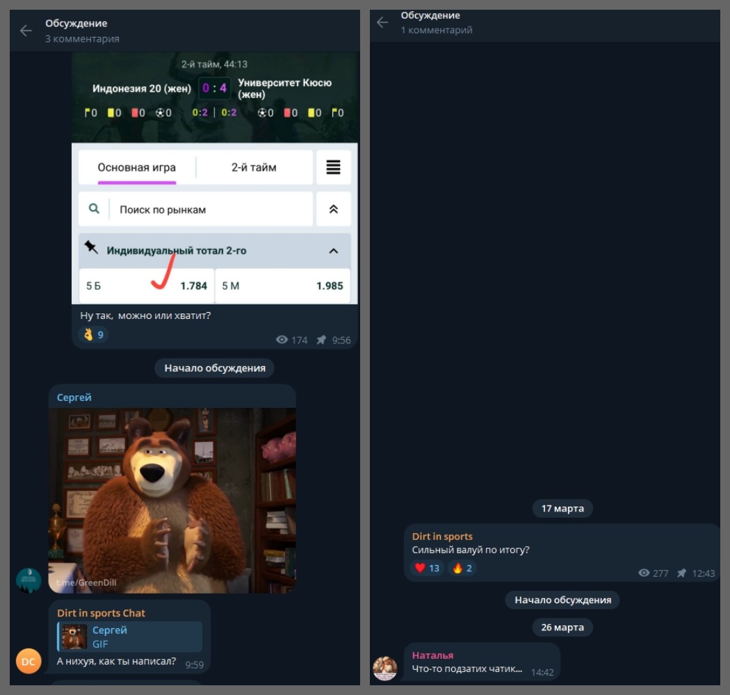 - Анонимностью админов, у которых нет причин обогащать всех вокруг при рассказах о «пари на сотни тысяч».