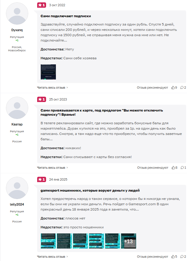 Отзывы о ресурсе GameSport com