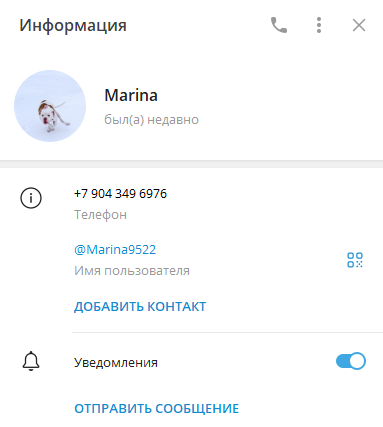 Администратор проекта – Марина. Неизвестно, за какие задачи она отвечает в рамках канала. Имя пользователя – @Marina9522. Никакой дополнительной информации на странице не предоставлено.