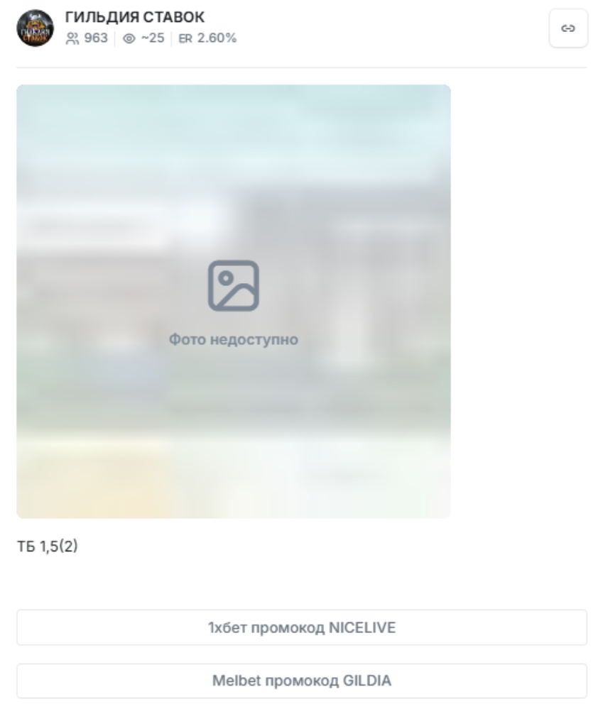 Глубокого анализа событий не наблюдается. Капер размещает скрин чека, оформленного в БК пари. На нем есть вся необходимая информация. Также исход дублируют в описании к посту. Но нет разбора статистики и важных факторов, способных повлиять на встречу.