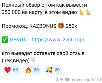 «GSvuti KAZAKHSTAN» — Телеграм-канал, который подается как площадка для заработка в букмекерской конторе. Клиентам обещают быстрый доход и крупные бонусы за регистрацию по ссылке БК.