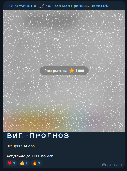 Также беттерам доступны ВИП прогнозы. Это экспрессы с кф от 2.0, купить которые можно только за ТГ-звезды. Цены от 1000 ТГ-звезд, или более 1000 рублей. О ВИП чатах, гарантиях замены или возврата не сообщается.
