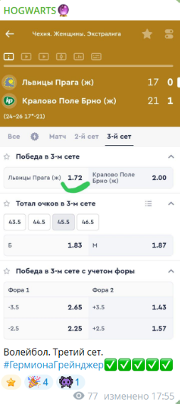 Отзывы на телеграмм-канал HOGWARTS: ставки от каппера проекта и их статистика