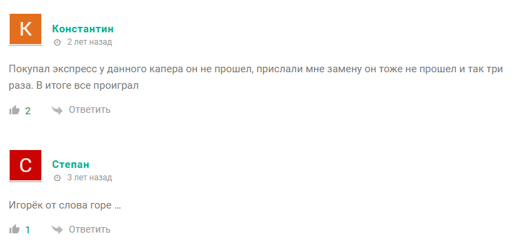 Пользователи не рекомендуют покупать платные подписки и прогнозы. Сотрудничество с бесплатным проектом – на усмотрение беттеров. Капер предлагает собственную аналитику, игроки могут с нею не соглашаться и делать собственные выводы. Проходимость неизвестна, потому вероятность получения надежного заработка небольшая.
