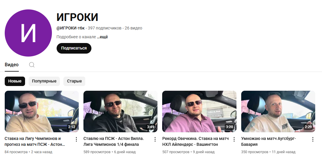 В YouTube капер выкладывает видео со спортивной аналитикой. Аудитория канала – около 400 пользователей, просмотров обычно больше. Ранее Гущину принадлежал канал с 26 000 подписчиками, однако он был закрыт за нарушение правил площадки. Здесь можно увидеть разбор матчей, прогнозы с обоснованием.