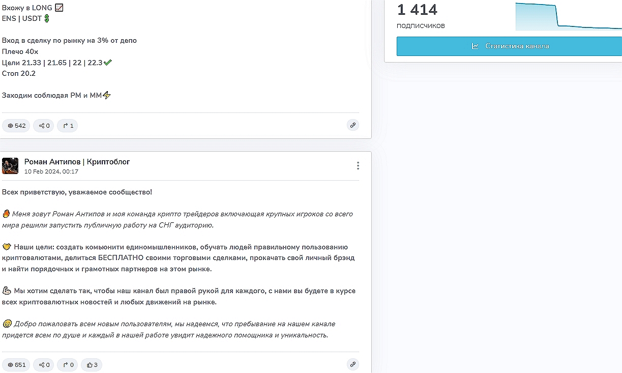 Последний из владельцев ресурса Илья Гильманов | Спортивный блог — очередной подозрительный персонаж, ориентированный уже не на обман беттеров, а трейдеров на криптобиржах. За день публикаций Роман Антипов не рассказал подписчикам ничего конкретного и исчез, хотя накануне обещал создать комьюнити для заработка на цифровых активах. Действия явно нелогичны и указывают на обман, особенно с учетом торговли с рискованным плечом от 20 до 50x.