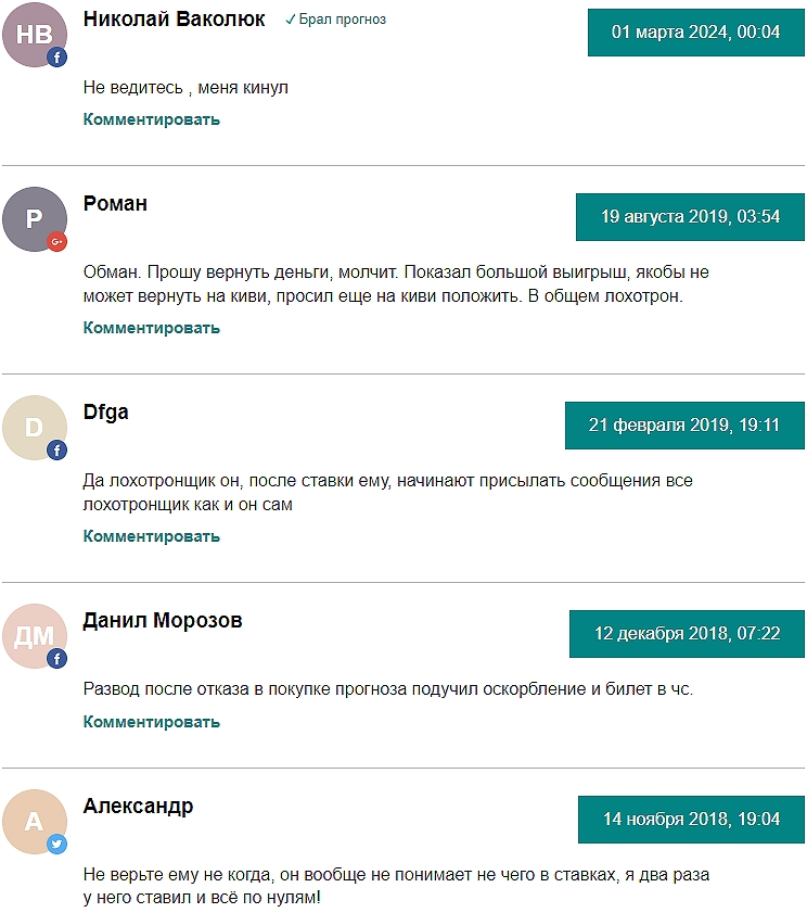 К слову, последний негативный отзыв на Руслана Пасечника датирован апрелем 2024, что в целом позволяет допустить продолжение тем развода в сообществе @prognozy_info во ВКонтакте. В любом случае покупка экспрессов в нем не рекомендована, а от всего, что связано с названием «Империя Ставок», лучше держаться подальше. То же стоит сказать и про брошенный осенью 2023 телеграм-канал анонима @Imperialadm, ведь с анонимного профиля здесь также мог орудовать Ruslan Pasechnik.