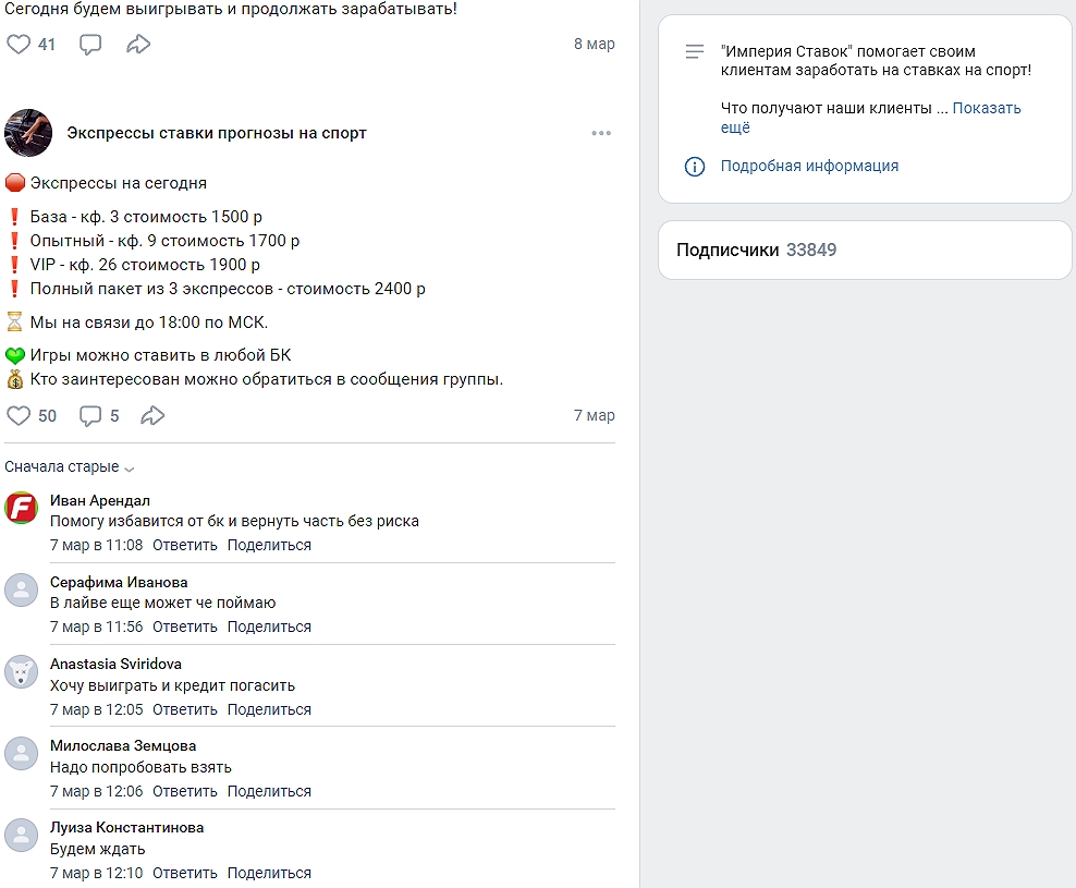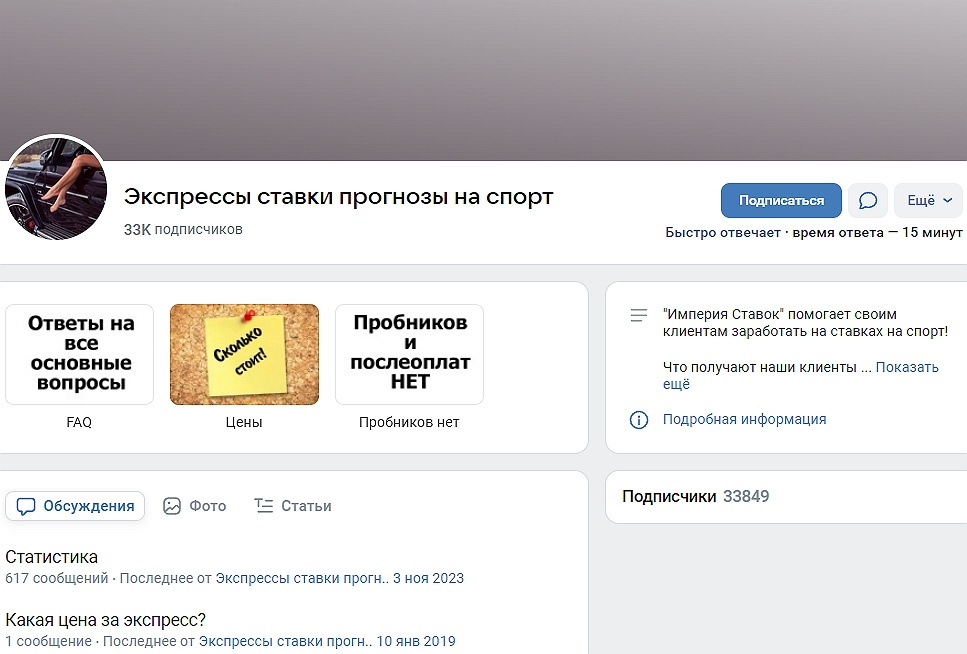Странно и другое — с чего вдруг непонятным людям во главе Экспрессы Ставки Прогнозы на Спорт в ВК спонсировать окружающих, если можно легко зарабатывать самим? Ответ на вопрос прост — админы @prognozy_info кинут вас на деньги и исчезнут, чем промышлял и владелец Imperiastavok Pro и Betimperium Com.