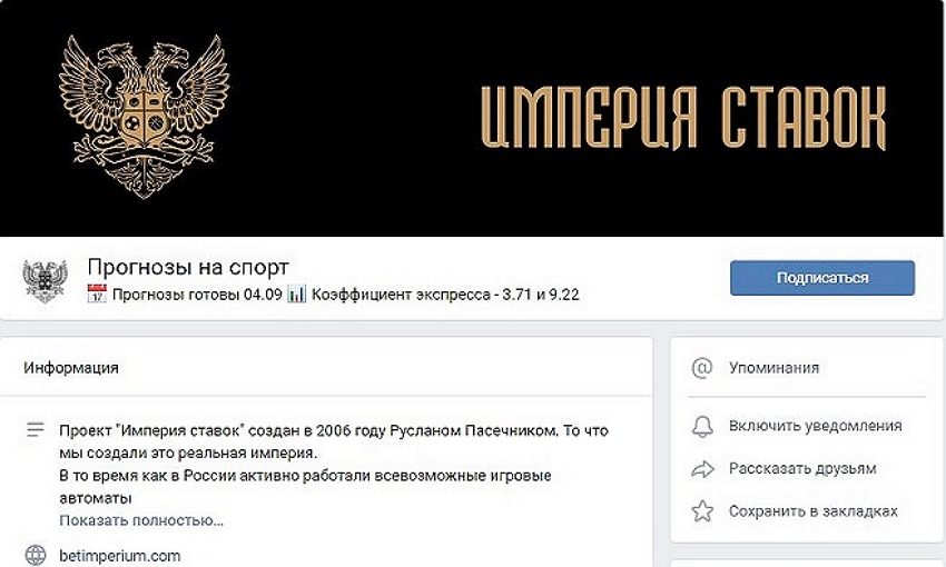 Призывы к «раскрутке» разного рода и игре экспрессами для легкой прибыли на диване лучше игнорировать, ведь у условного «доброго дяди» в онлайне нет причин на спонсорство кого-то, кроме себя. Вот и админ Империи Ставок ничего не умножал и не прогнозировал, а лишь наживался на подписчиках и блокировал их в ЧС.