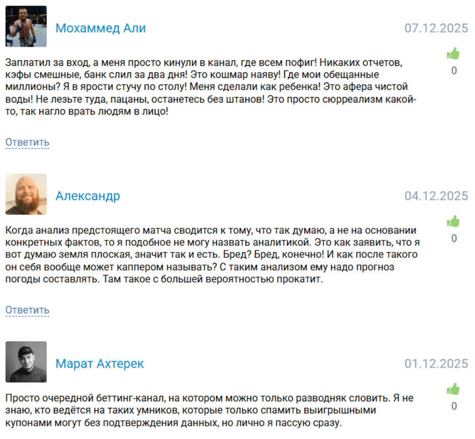 Прогнозист не ведет отдельных ВИП чатов. Его доход формируется за счет продажи экспрессов. Во время акций стоимость предиктов — 999 рублей.