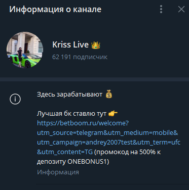 На проекте Kriss Live в Телеграмм беттерам предлагают гарантированный заработок на ставках в БК. Аналитик канала специализируется на управлении счетами игроков, принимая в работу депозиты разной величины. Разбираемся, надежный это ресурс или мошеннический.