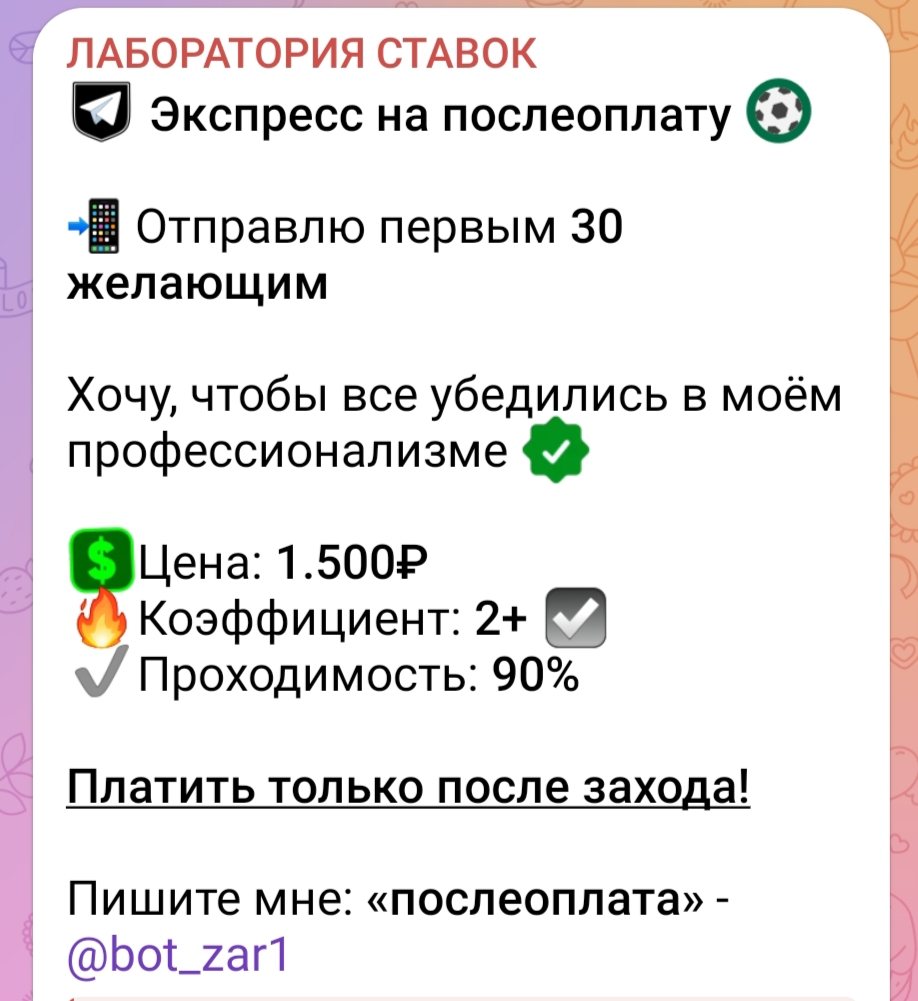 Аналитик Bot zar1: обзор канала Лаборатория Ставок, сведения о капере, реальная проходимость ставок и отзывы игроков