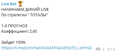 Телеграмм канал Live Bet: отзывы о деятельности каппера white9257, разбор и анализ качества прогнозов