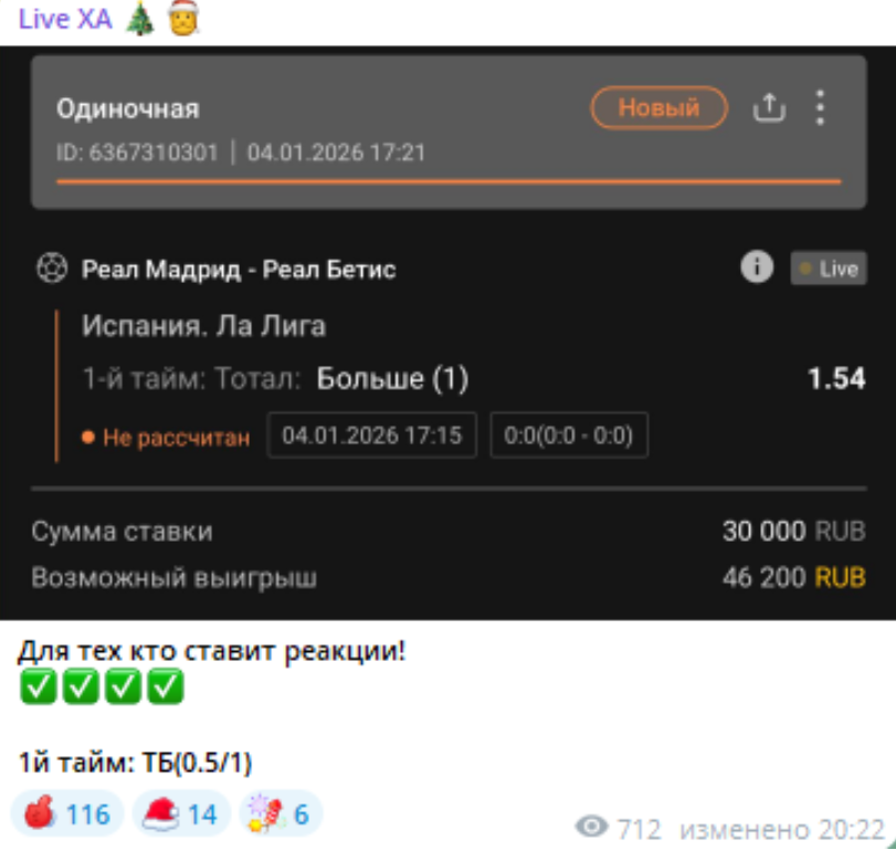 Проект Live XA в Telegram: отзывы беттеров и проходимость ставок на спорт прогнозиста Алексея Алиева