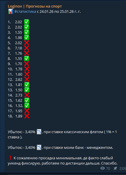 Канал Loginov | Футбольная аналитика в Телеграмм: отзывы игроков и реальная проходимость ставок аналитика Романа Логинова