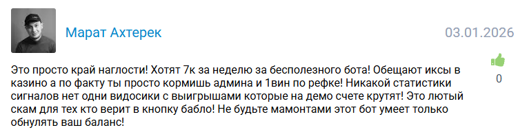 Все «доказательства» успеха — это скриншоты выигрышей, которые легко подделать. Стоимость подписки не фиксирована и сообщается в личных сообщениях, что снижает доверие и указывает на непрозрачную схему заработка. Гарантии возврата средств нет.