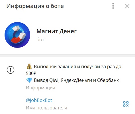 Телеграмм-канал JobBoxBot под брендом «Магнит Денег» позиционируется как проект для заработка на простых заданиях и прогнозах. Подписчику предлагается бесплатный бот, с помощью которого можно выполнять действия на сторонних ресурсах. Мы провели проверку, анализ канала и подготовили разоблачение, показывая, почему участие в нем несет больше минусов, чем дохода.