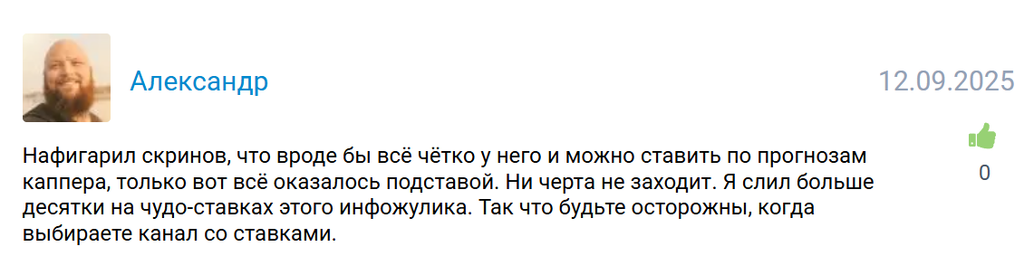 Отзывов о проекте очень мало. В самом канале можно встретить только положительные комментарии, но они выглядят как фейк. На независимых ресурсах отсутствуют доказательства проходимости ставок. Игроки отмечают, что результат — всегда минус для клиента, а доход идет исключительно админу.