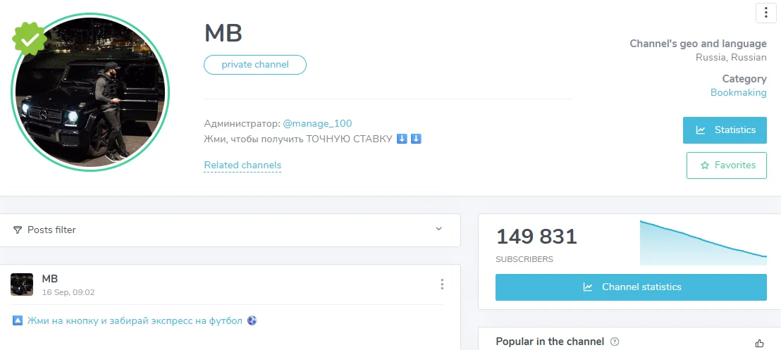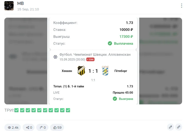 MB — телеграм-канал о ставках на спорт: схема заработка, аналитика матчей и статистика проходимости