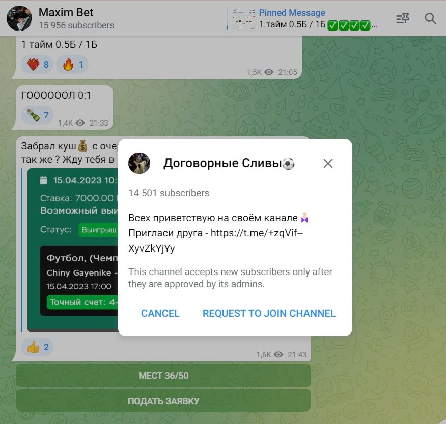 Максим Бет – это Телеграм-канал, который ведет каппер Максим. Проект ориентирован на спортивные ставки, преимущественно по футболу и настольному теннису. Основной упор делается на публикацию ординаров в лайв-режиме. Мы изучим работу аналитика, чтобы сделать выводы о том, стоит ли ему доверять. Каппер сотрудничает с БК по партнерской программе. Он публикует рекламные ссылки на нелегальные БК, тем самым зарабатывая процент от проигрышей своих подписчиков.
