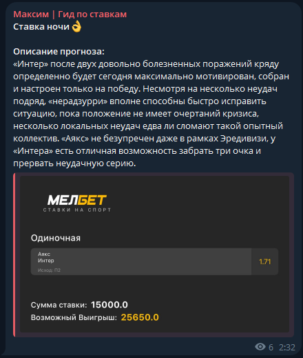 Максим Гид По Ставкам: схема заработка в Telegram, аналитика матчей и результаты ставок