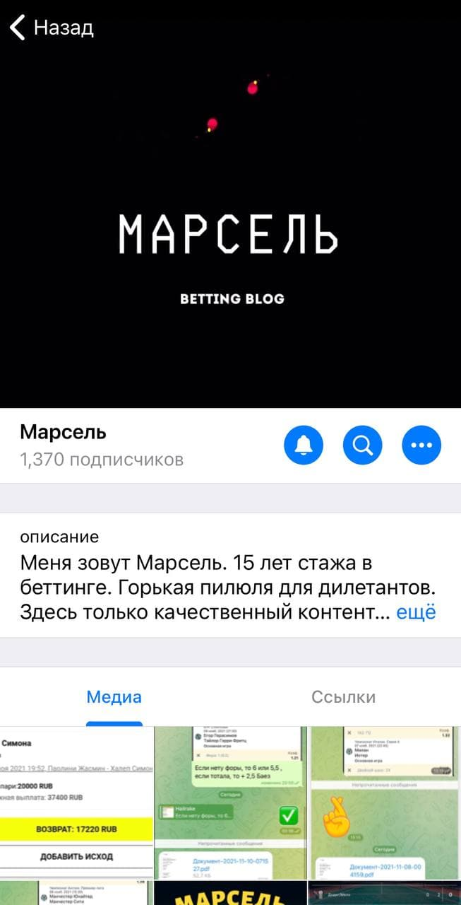 Оценка Телеграм-канала со ставками Марсель: отзывы подписчиков, какие услуги предлагает каппер