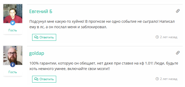 На независимых площадках встречаются негативные комментарии об этом проекте. Каппер запрашивает дополнительные платежи после первой оплаты. А после перевода средств блокирует пользователей. Также пользователи жалуются на несоответствие обещаний и реальной проходимости прогнозов.