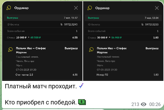 Администратор Евгения публикует отчеты по проходимости платных договорных матчей. Она и ее команда не анализирует спортивные события, при этом результаты остаются достойными – проходимость достигает 95-100%.