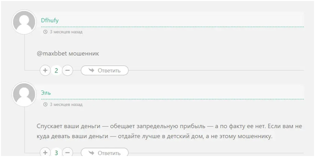 Важно отметить, что все слова о большом опыте аналитика Максима Геннадьевича и его профессионализме никак не подтверждаются, хотя бы, положительными отзывами. Интернет наполнен массой негативных комментариев, причем есть очень много прямых обвинений в мошенничестве.