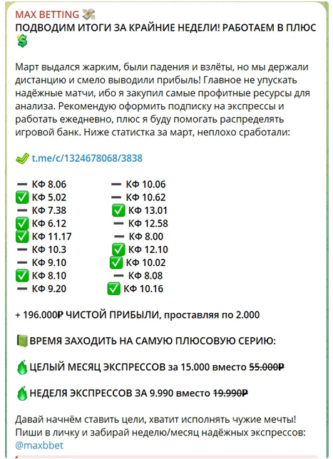 Обзор проекта в Телеграмм MAX BETTING: результативность и схемы обмана от @maxbbet, настоящие отзывы клиентов о каппере Максиме Геннадьевиче