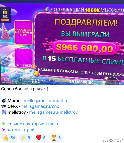 Что предлагает капер в Telegram-канале «Mellstroy Game»