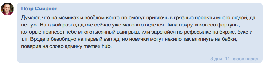 Memes HUB — это не капперский проект, а замаскированный ресурс для рекламы БК. Он не предлагает прогнозов, а просто заманивает пользователей мемами. Доверия к нему нет. Это чистой воды развод на рекламе, который не имеет отношения к реальной аналитике спорта.