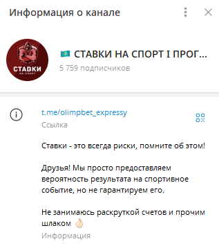 Телеграм-канал Ставки на спорт | Прогнозы имеет аудиторию в 5800 подписчиков, а ведет его пользователь stavky kovalenko. Он не применяет известные в сети схемы мошенничества, не дает гарантию заоблачной прибыли и постоянно предупреждает о рисках в ставках.