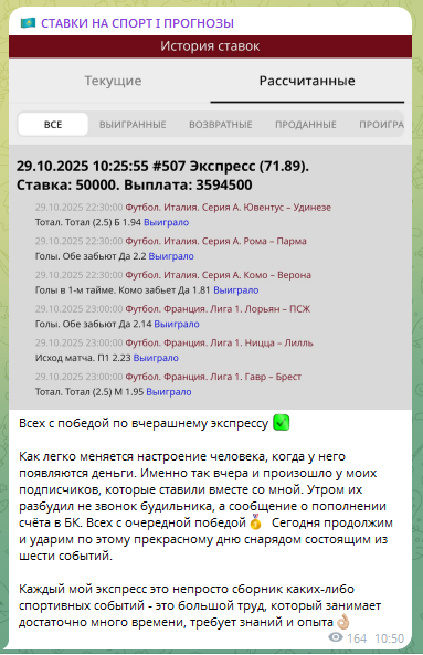 Такой простецкий телеграмм-канал, как у Михаила Коваленко не заслуживает внимания беттеров. Развод здесь совсем наивный и мы надеемся, то игроки бк на него не ведутся. Не могут привести к доходу экспрессы из шести событий — маржа в них не даст вам выиграть на дистанции.